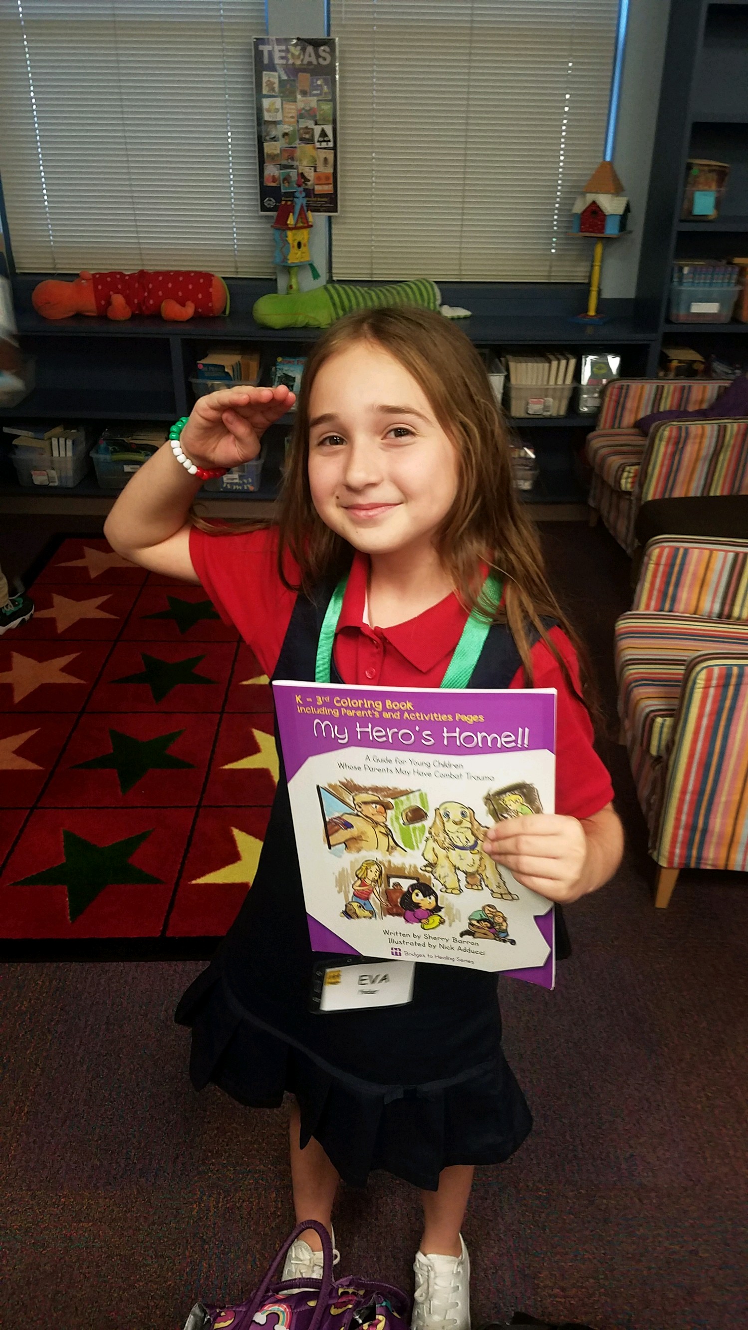 “I wanted to say thank you for giving me the consent to share Eva’s picture with the author of the book My Hero’s Home.  It will enable supporters and other military families to see that the book is being shared with the military students. It is my hope that the book will be a great help and blessing to Eva to assist her with navigating through the times when her soldier is away and returns.